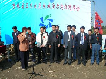 为加快玉米全程机械化进程,选择适合我省的玉米收获机械产品,满足农民的不同需求,吉林省农委于9月23日组织召开了玉米机械收获作业演示购机现场会。省农委副主任陈巳、省农机局长成洪、省直各农机单位的领导、各有关市、县(市、区)农机(农业)局主管局长和推广站长、购机农户及附近群众百余人到现场观看了机收演示。 来自省内外7家玉米联合收获机生产企业的8种型号的产品参加了机收演示。在演示现场还设立了购机处,对现场购买规定机型的农户按省补贴标准每台机具给予15000元的购机补贴。 本次现场会共在三个市、县设立演示现场,23日的演示现场位于榆树市红星乡,25日的演示现场位于前郭县大山乡,29日的演示现场位于九台市纪家乡。
